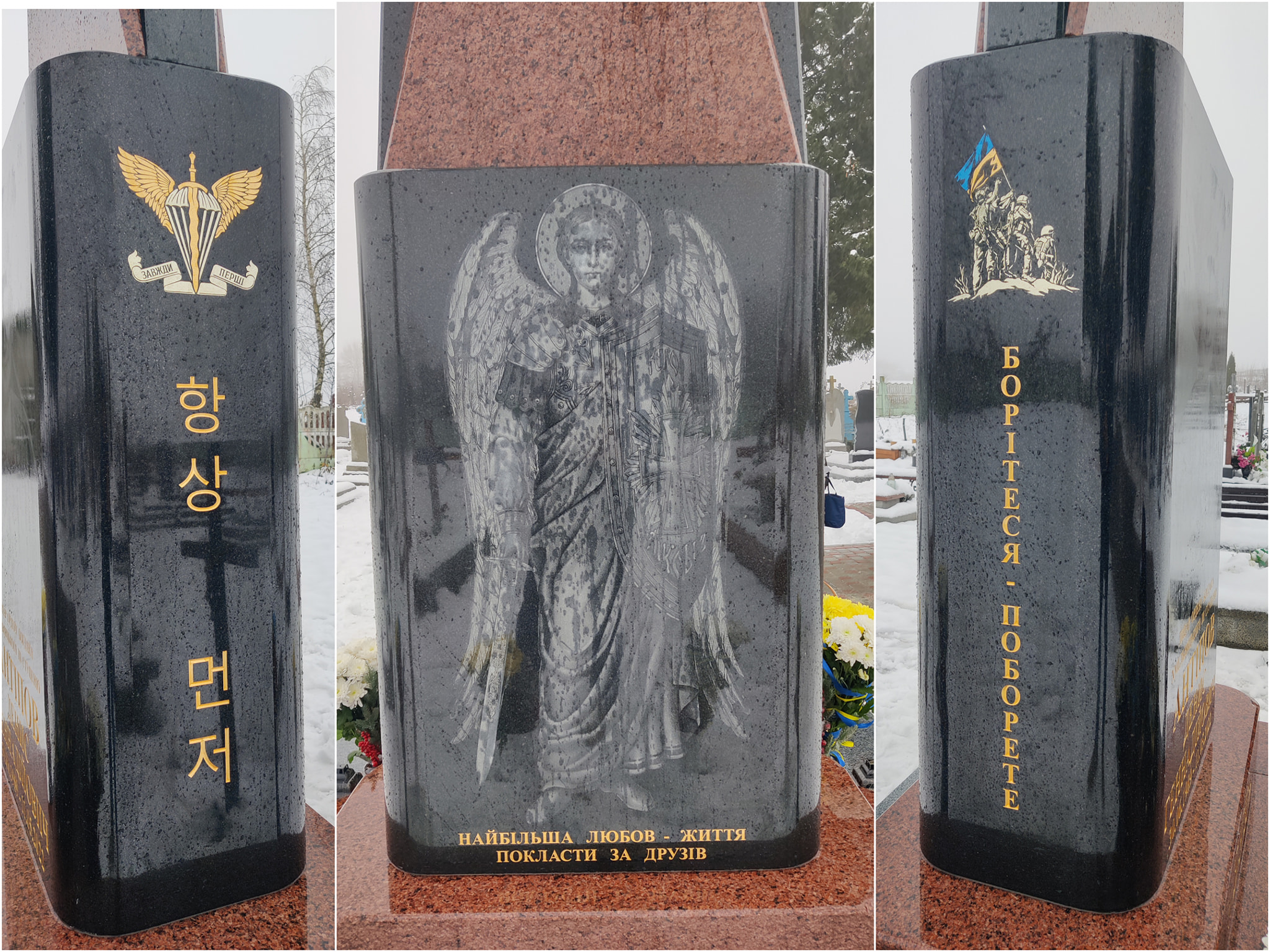 ▪️ Гасло ДШВ ЗСУ "Завжди перші" корейською мовою, бо Денис жив Південною Кореєю, її мовою та традиціями.